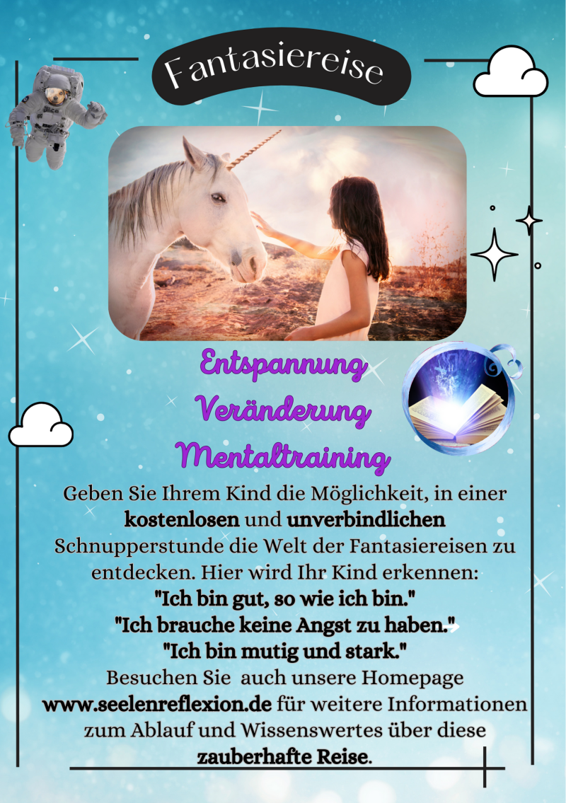 Eine Fantasiereise ist eine wohltuende Methode, die nicht nur Kreativität anregt, sondern auch Stress abbaut und Sorgen verblassen lässt. Durch eine inspirierende Geschichte werden die Gedanken auf eine zauberhafte Reise gelenkt, die Raum für neue Ideen schafft und Herausforderungen entschärft.